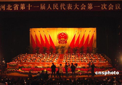 一月二十三日上午九點,河北省十一屆人大一次會議在河北省會石家莊河北會堂開幕,河北省省長郭庚茂做政府工作報告。本屆大會將進行換屆選舉,河北省第十一屆人大常委會主任、副主任、秘書長、委員,河北省人民政府省長、副省長,河北省高級人民法院院長以及河北省人民檢察院檢察長等,將在會上選舉產(chǎn)生。會議將于一月二十九日閉幕。中新社發(fā) 牛琳 攝