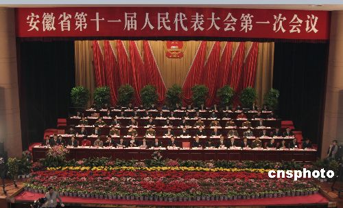 1月25日上午9時,安徽省第十一屆人民代表大會第一次會議在安徽大劇院隆重開幕。此次會議將聽取安徽省政府工作報告、審查計劃報告和預(yù)算報告,并表決全國人大代表選舉辦法草案、表決總監(jiān)票人和監(jiān)票人名單草案、表決關(guān)于確定省十一屆人大委員會組成人員名額的決定草案、表決關(guān)于設(shè)立安徽省十一屆人大專門委員會的決定草案。中新社發(fā) 張婭子 攝