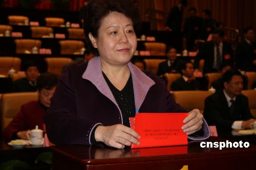 一月二十六日,廣西壯族自治區(qū)第十一屆人大一次會(huì)議第四次全體會(huì)議上,廣西壯族自治區(qū)人事廳廳長(zhǎng)李康(壯族)當(dāng)選為廣西壯族自治區(qū)副主席,成為本屆廣西自治區(qū)政府唯一的女性副主席。她是十七屆中共中央候補(bǔ)委員。圖為李康在會(huì)上進(jìn)行投票。中新社發(fā) 林艷華 攝