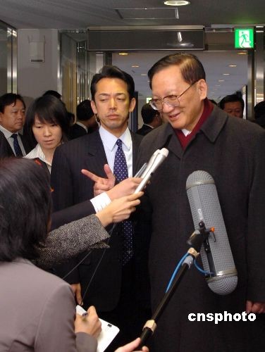 2月20日下午3點(diǎn)35分,中國(guó)國(guó)務(wù)委員唐家璇抵達(dá)東京成田國(guó)際機(jī)場(chǎng),開始對(duì)日本進(jìn)行友好訪問(wèn)。圖為唐家璇國(guó)務(wù)委員走下飛機(jī)后,接受中日媒體的采訪。中新社發(fā) 滕劍峰 攝