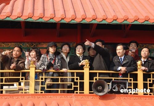 2月21日,中國國務(wù)院僑辦主任李海峰(左五)和前來參加“海峽西岸鬧元宵,全球華人盼團圓”活動的五百多位臺港澳僑胞一起乘坐“成功”六號仿古游船,觀賞金門、環(huán)鼓浪嶼風光。中新社發(fā) 鄭祚聲 攝