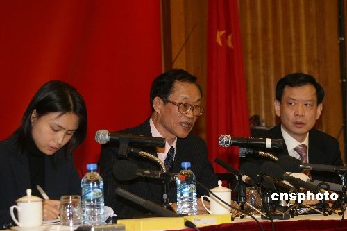 當(dāng)?shù)貢r(shí)間21日下午,中國(guó)政府達(dá)爾富爾問(wèn)題特別代表劉貴今(中)在中國(guó)駐英使館舉行記者會(huì),介紹中國(guó)在達(dá)爾富爾問(wèn)題上的政策立場(chǎng)。中新社發(fā) 李鵬 攝