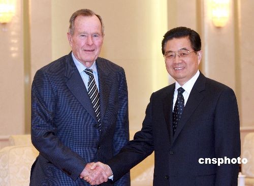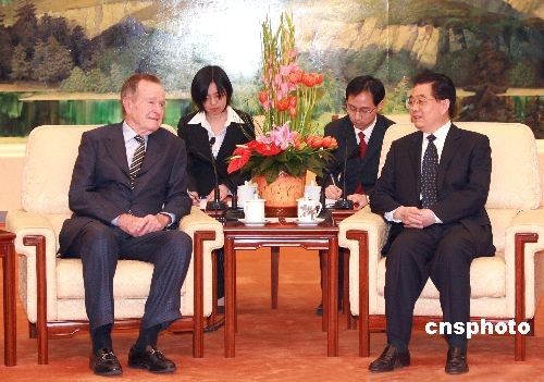圖:胡錦濤會(huì)見美國前總統(tǒng)喬治·布什