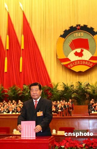全國政協(xié)選舉新領(lǐng)導(dǎo)人 賈慶林投票