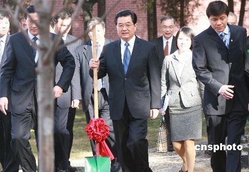 胡錦濤為中日青少年友好交流年活動植樹