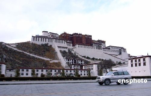 3月19日,一輛汽車駛過拉薩布達拉宮廣場。目前,拉薩市區(qū)各個路段車輛自由通行,大部分商店恢復營業(yè),高校以及中小學正常上課,社會秩序基本恢復正常。中新社發(fā) 廖攀 攝