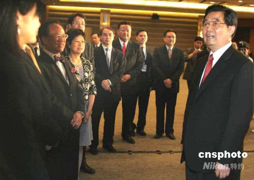 圖:胡錦濤在博鰲親切會(huì)見港澳企業(yè)家