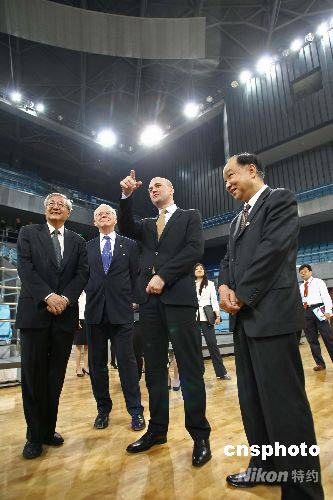 4月14日,瑞典首相賴因費(fèi)爾特在北京大學(xué)發(fā)表演講,并參觀了北京大學(xué)體育館。北京大學(xué)體育館將作為2008年北京奧運(yùn)會(huì)乒乓球?qū)S脠鲳^。中新社發(fā) 盛佳鵬 攝