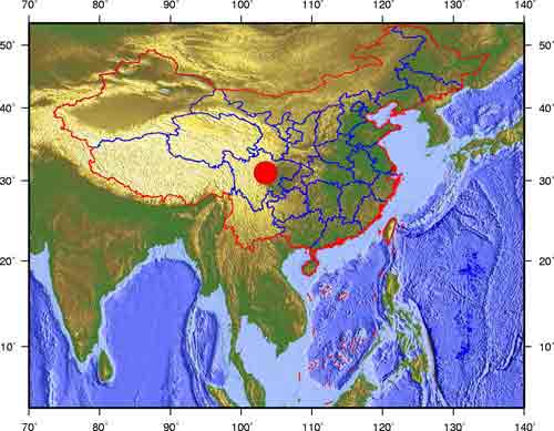 圖:四川汶川地震震中示意圖