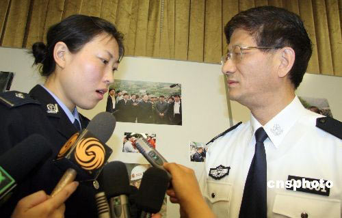 5月19日,中國國務(wù)委員、公安部部長孟建柱在北京向被稱為地震災(zāi)區(qū)“最堅(jiān)強(qiáng)女性”的四川省彭州市公安局民警蔣敏表示慰問。在此次汶川特大地震災(zāi)害中,蔣敏在北川縣城老家的爺爺奶奶、母親、剛滿兩歲的女兒等近十位親人不幸罹難,但她依然連續(xù)奮戰(zhàn)在抗震救災(zāi)一線。蔣敏事跡經(jīng)官方媒體報(bào)道后,被民間稱為“最堅(jiān)強(qiáng)女性”、“最堅(jiān)強(qiáng)母親”,網(wǎng)友則親切稱她為“最堅(jiān)強(qiáng)警花”。中新社發(fā) 孫自法 攝
