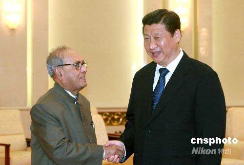6月6日,中國國家副主席習近平在北京人民大會堂會見印度外交部部長慕克吉。中新社發(fā) 廖文靜 攝