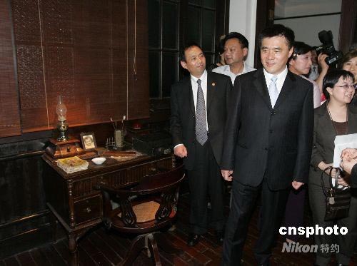 6月23日晚,臺北市長郝龍斌到訪上海時尚地標新天地,專門考察、參觀老上海的特色建筑——石庫門,了解上海的過去和現在。中新社發(fā) 潘索菲 攝