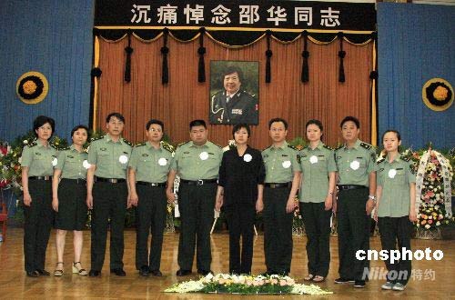 6月26日,解放軍三零一醫(yī)院的義務(wù)人員在北京悼念中國(guó)攝影家協(xié)會(huì)主席邵華。圖中左五左六為邵華之子毛新宇和妻子劉濱。邵華將軍于6月24日在北京因病去世,終年69歲。中新社發(fā) 吳小地 攝