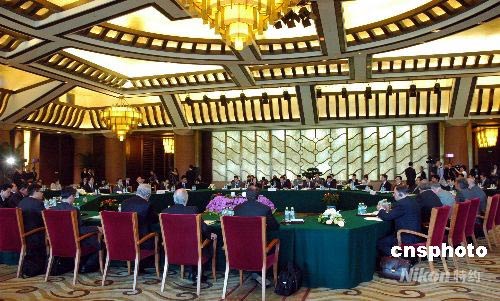 朝核問題六方會談各方代表團(tuán)團(tuán)長7月10日下午再次會聚北京釣魚臺國賓館芳菲苑內(nèi),重啟朝核問題六方會談。中方代表團(tuán)團(tuán)長、中國外交部副部長武大偉在發(fā)言時,將這次團(tuán)長會稱作是全面落實(shí)第二階段行動的“加油站”,推動六方會談邁向新階段的轉(zhuǎn)折點(diǎn)。出席這次六方會談的各方代表團(tuán)團(tuán)長中出現(xiàn)了三張新面孔,分別是韓國代表團(tuán)團(tuán)長金塾、俄羅斯代表團(tuán)團(tuán)長博羅達(dá)夫金和日本代表團(tuán)團(tuán)長齋木昭隆。團(tuán)長會之前,武大偉向媒體介紹了這三位新團(tuán)長。中新社發(fā) 孫宇挺 攝