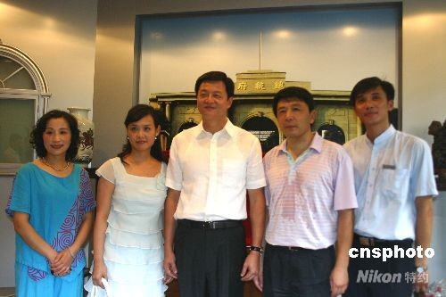 7月26日下午,臺北縣長周錫瑋一行參觀南京“總統(tǒng)府”(南京中國近代史遺址博物館),并在“總統(tǒng)府”巨幅彩照前和館內(nèi)工作人員合影。臺北縣南京參訪團(tuán)于25日晚間抵達(dá)南京,展開訪問。中新社發(fā) 朱曉穎 攝