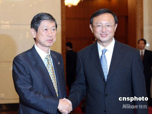 8月17日,中國外交部部長楊潔篪在北京釣魚臺(tái)國賓館會(huì)見日本外相高村正彥。中新社發(fā) 廖文靜 攝