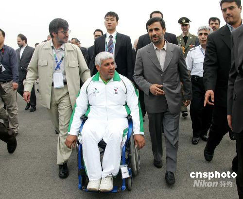 9月6日,伊朗總統(tǒng)艾哈邁迪-內賈德飛抵首都國際機場,前來出席北京殘奧會開幕式及相關活動。中新社發(fā) 富田 攝