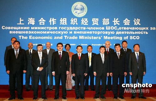 9月24日,上海合作組織經(jīng)貿部長第七次會議在北京召開。會議就落實今年8月杜尚別峰會的經(jīng)貿共識,做好10月底將在阿斯塔納舉行的總理會議的相關準備工作充分交換了意見,審議并通過了重新修訂的《〈上海合作組織成員國多邊經(jīng)貿合作綱要〉落實措施計劃》,決定優(yōu)先重點落實交通、電信、現(xiàn)代技術、農業(yè)、能源等領域的合作項目,進一步加強各專業(yè)工作組工作,繼續(xù)發(fā)揮實業(yè)家委員會和銀聯(lián)體在落實合作項目中的作用。中新社發(fā) 富田 攝