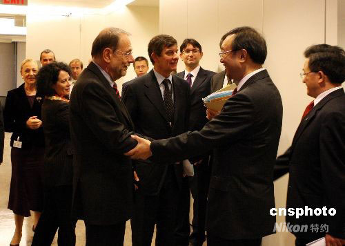 9月25日下午,中國外交部長楊潔篪在紐約與歐盟理事會(huì)秘書長兼歐盟共同對外關(guān)系與安全政策高級代表索拉納(左三)、歐盟委員會(huì)對外關(guān)系委員瓦爾德納(左一)、歐盟主席國法國外長庫什內(nèi)(中)、候任主席國捷克外長施瓦岑貝格(左二)等歐盟“三駕馬車”外長舉行會(huì)晤。中新社發(fā) 李靜 攝