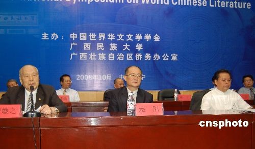 10月27日,為期兩天的第十五屆世界華文文學(xué)國際學(xué)術(shù)研討會(huì)在廣西南寧開幕,中國國務(wù)院僑辦副主任趙陽出席,與會(huì)代表紛紛與趙陽合影。據(jù)悉,本次會(huì)議共有來自歐洲、美洲、大洋洲、東南亞等地區(qū)16個(gè)國家以及中國內(nèi)地、港澳臺(tái)地區(qū)的200余名專家學(xué)者與會(huì)。研討會(huì)主議題為“世界華文文學(xué)學(xué)術(shù)前沿”,四個(gè)分議題分別為“東南亞華文文學(xué)新發(fā)展”、“國際新移民文學(xué)的新思考”、“華文文學(xué)中的女性書寫”和“兩岸四地文學(xué)整體研究”。中新社發(fā) 劉萬強(qiáng) 攝