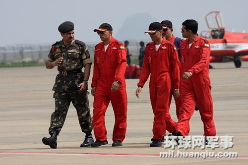 抵達(dá)的印度空軍飛行表演隊(duì)飛行員 攝影:環(huán)球時(shí)報(bào)記者郝珺石