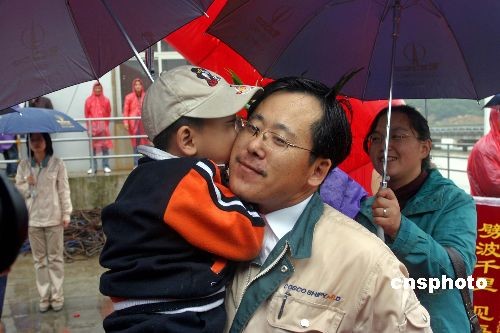 11月2日上午9時(shí)許,中國(guó)海事執(zhí)法船“海巡21”載著被三艘外籍漁業(yè)輔助船挾持的15名中國(guó)公民,安全靠泊在浙江舟山長(zhǎng)峙碼頭。在中國(guó)海事局、中國(guó)海上搜救中心的全力救助和韓、日兩國(guó)海事部門的協(xié)助下,10月20日被外籍漁業(yè)輔助船挾持的15名中國(guó)公民安全回到祖國(guó)懷抱。中新社發(fā) 黃正勝 攝