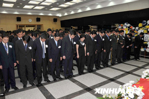 11月3日,中國(guó)駐蘇丹大使館舉行儀式,向日前在蘇丹被武裝分子綁架后遇害的5名同胞告別。中國(guó)駐蘇丹大使館工作人員、中國(guó)政府處理在蘇丹被綁架中國(guó)工人善后事宜工作組成員、中國(guó)石油天然氣集團(tuán)公司負(fù)責(zé)人和在蘇丹中資機(jī)構(gòu)代表等200多人出席了儀式。中國(guó)石油天然氣集團(tuán)公司9名員工2008年10月18日在蘇丹西南部一施工現(xiàn)場(chǎng)遭武裝分子綁架,其中5人遇害,另4人獲救。 新華社記者邵杰攝