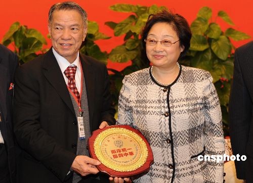 十一月十八日,中國國務(wù)院僑務(wù)辦公室主任李海峰在北京釣魚臺國賓館會見以陳永栽為團長的菲華商聯(lián)總會中國訪問團一行。中新社發(fā) 廖攀 攝