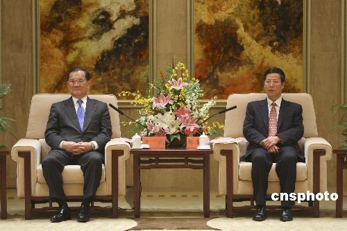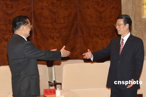 12月14日,中共天津市委書記張高麗在天津會見中國國民黨榮譽主席連戰(zhàn)。中新社發(fā) 盛佳鵬 攝