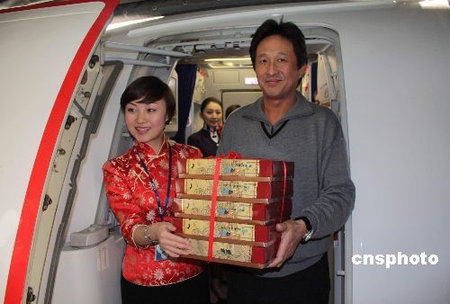 東航執(zhí)飛大陸首班“截彎取直”常態(tài)包機(jī),十二月十五日上海載客安全抵達(dá)臺北桃園機(jī)場后,其回程航班又于當(dāng)天搭載120名旅客從臺北桃園機(jī)場起飛,順利返回上海浦東機(jī)場。圖為飛機(jī)抵達(dá)上海浦東機(jī)場后,最后一名走出客艙的臺胞乘客(圖右)。中新社發(fā) 沈曉晟 攝