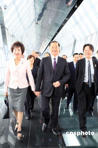 圖:連戰(zhàn)夫婦登上101層的上海環(huán)球金融中心