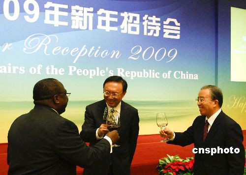 12月28日,中國外交部部長楊潔篪在北京釣魚臺國賓館舉行“外交部2009年新年招待會”,招待各國駐華使節(jié)和國際組織代表及其配偶。國務(wù)委員戴秉國、有關(guān)部門負(fù)責(zé)人及中外來賓400余人出席。中新社發(fā) 盛佳鵬 攝