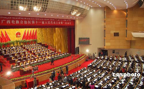 1月10日,為期五天的廣西壯族自治區(qū)十一屆人大二次會(huì)議在廣西首府南寧開幕。廣西壯族自治區(qū)主席馬飚在大會(huì)上做政府工作報(bào)告。中新社發(fā) 劉萬強(qiáng) 攝