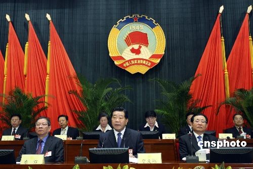 3月11日,全國政協(xié)第十一屆全國委員會常務(wù)委員會第五次會議在北京舉行,會議通過政協(xié)第十一屆全國委員會第二次會議關(guān)于常務(wù)委員會工作報(bào)告的決議(草案),審議通過政協(xié)第十一屆全國委員會提案委員會關(guān)于政協(xié)十一屆二次會議提案審查情況的報(bào)告(草案),通過政協(xié)第十一屆全國委員會第二次會議政治決議(草案)。全國政協(xié)主席賈慶林主持會議。 中新社發(fā) 盛佳鵬 攝