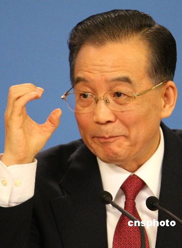 3月13日上午,溫家寶總理在中外記者招待會上回答中國新聞社記者、中國新聞網記者翁陽提問時表示,財政赤字還在可控的范圍內,債務也還是安全的。中新社發(fā) 任晨鳴 攝