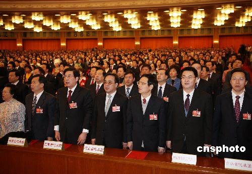3月13日上午,第十一屆全國人民代表大會第二次會議在全體代表的國歌聲中閉幕。中新社發(fā) 任晨鳴 攝