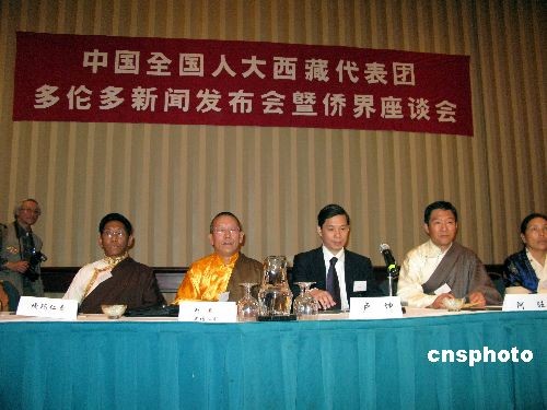 當?shù)貢r間三月二十日,結束在美國的訪問后,由五位在西藏成長和生活的全國人大代表組成的中國全國人大西藏代表團赴加拿大繼續(xù)訪問。在加拿大機場受到當?shù)馗鹘缛耸康臒崃覛g迎。二十日抵達多倫多數(shù)小時后,代表團舉行記者會,接受二十多家媒體四十多名記者的集體采訪,詳細回答記者的提問。中新社發(fā) 孫宇挺 攝