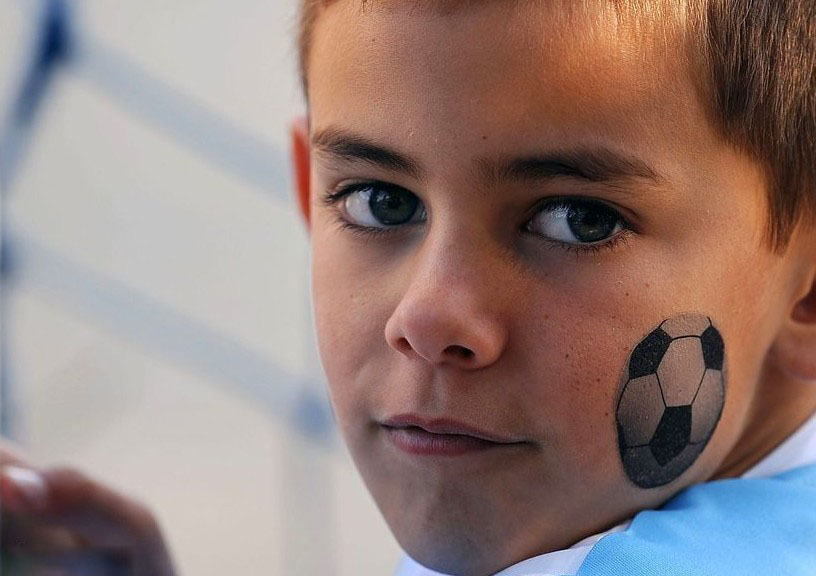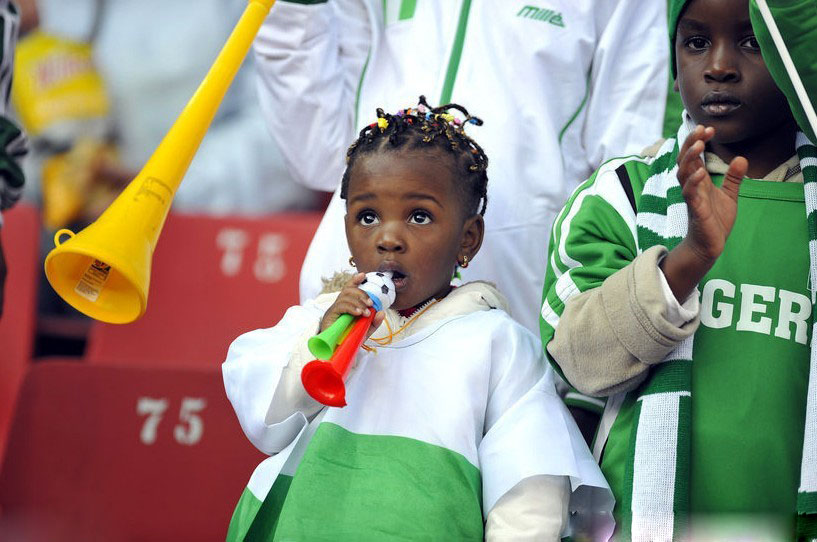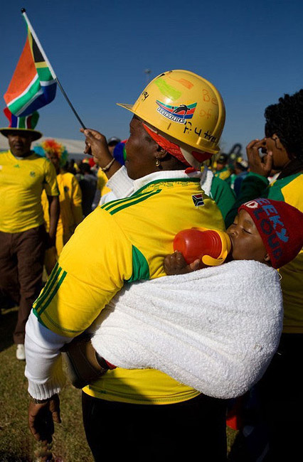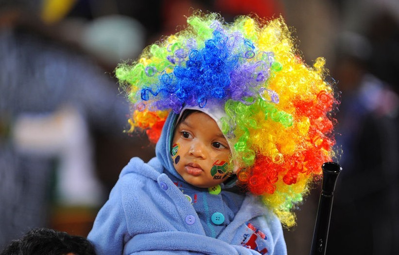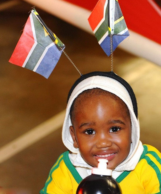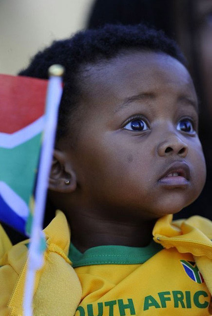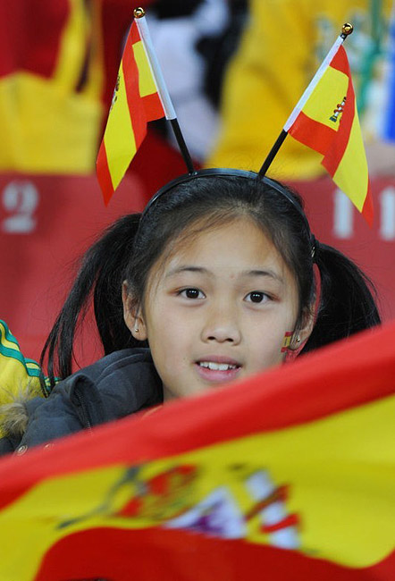 2010南非世界杯光是成年人的球賽,同時(shí)也是許多娃娃表演的舞臺(tái)。他(她)們跟著成人球迷一起來到賽場(chǎng),支持自己所喜歡的球隊(duì)。圖片來源:新華網(wǎng)