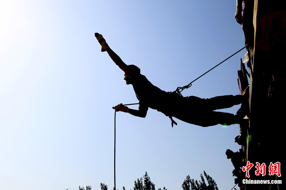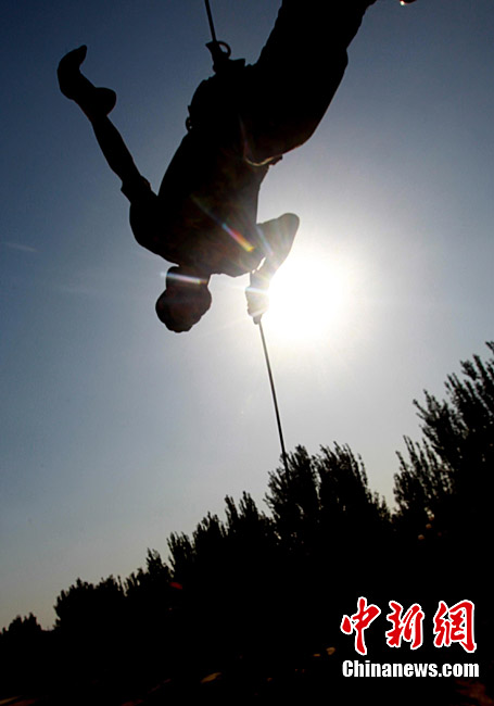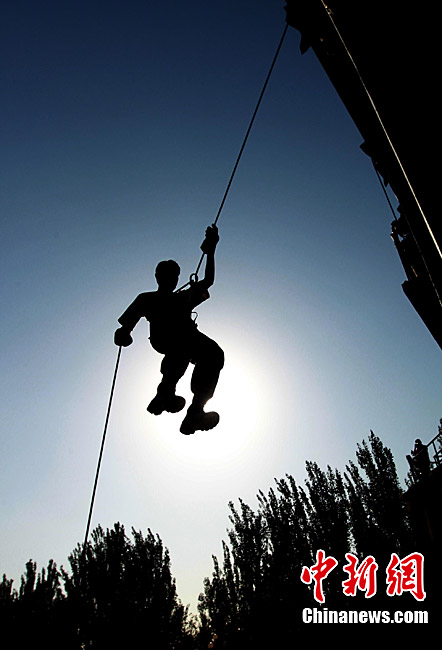 7月初,代號(hào)“友誼—2010”的中國(guó)巴基斯坦反恐聯(lián)合訓(xùn)練在中國(guó)寧夏青銅峽地區(qū)展開(kāi),此次訓(xùn)練主要以邊境地區(qū)山地聯(lián)合反恐作戰(zhàn)為課題。中巴雙方都派出了反恐精英參訓(xùn),各投入了一個(gè)連的特種作戰(zhàn)兵力,共200多人。這是中國(guó)與巴基斯坦兩國(guó)軍隊(duì)繼2004年和2006年,先后在中國(guó)以及巴基斯坦境內(nèi)舉行反恐聯(lián)訓(xùn)聯(lián)演活動(dòng)之后,舉行的第三次反恐聯(lián)合訓(xùn)練。這次反恐聯(lián)訓(xùn)分“展示交流”、“混編同訓(xùn)”和“綜合演練”三個(gè)階段進(jìn)行。中新社發(fā) 杜洋 攝
