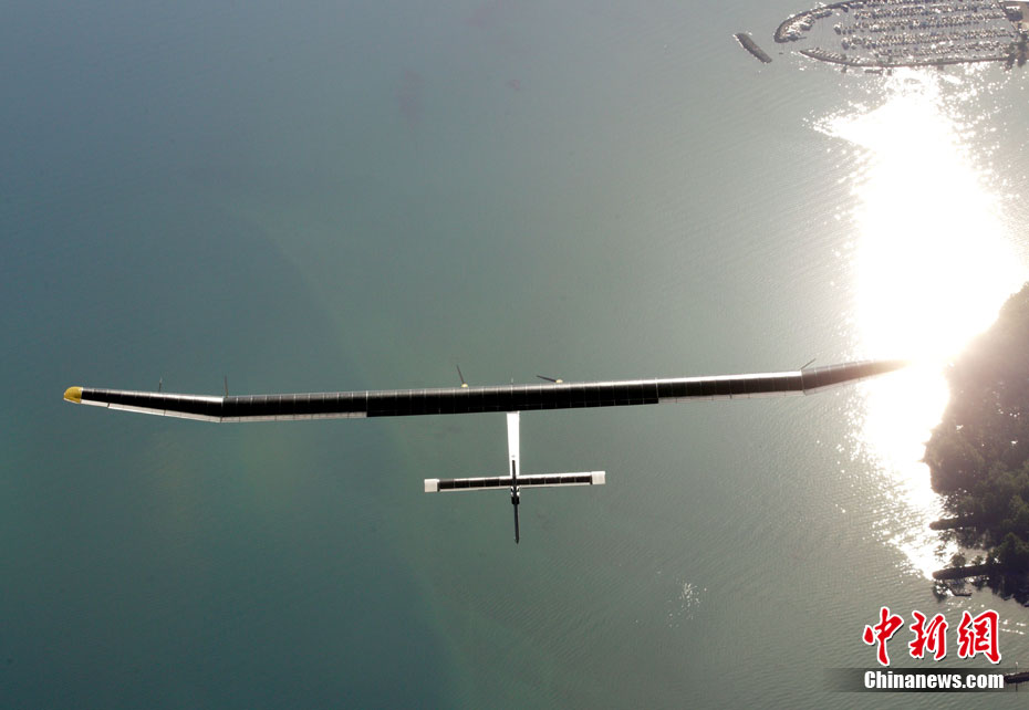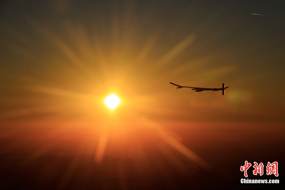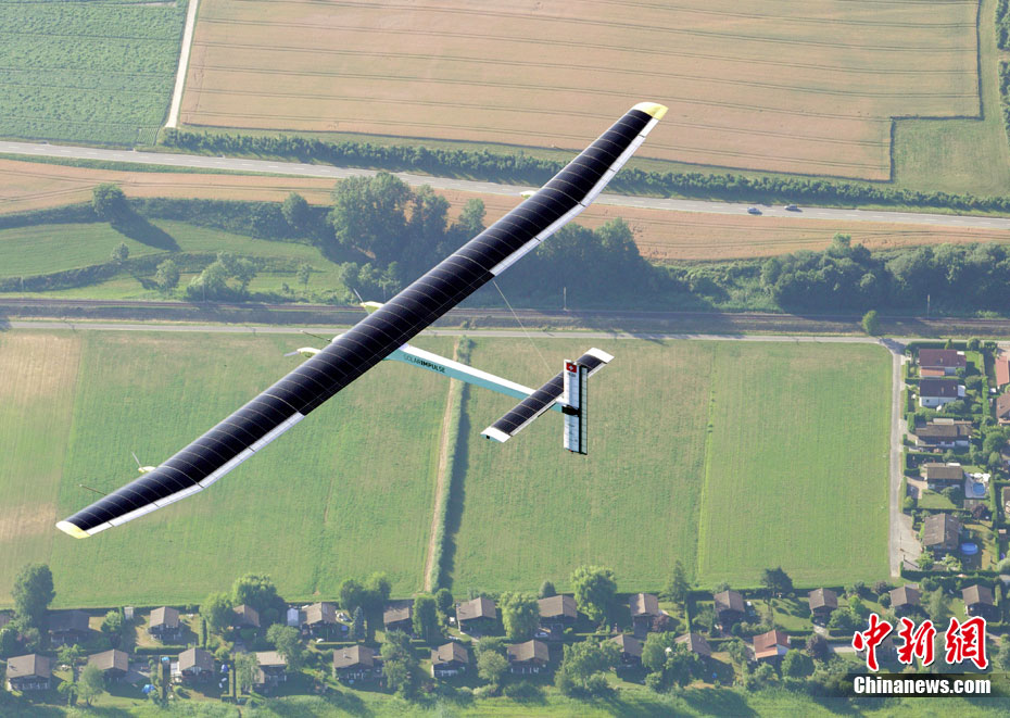 7月8日,太陽能飛機“太陽驅(qū)動”在空中飛行。世界最大太陽能飛機——瑞士制造的“太陽驅(qū)動”飛行26小時后,于當(dāng)?shù)貢r間8日9時在瑞士帕耶那機場降落,成功完成首次晝夜試飛。這是世界上首次進行太陽能飛機的夜間試飛。