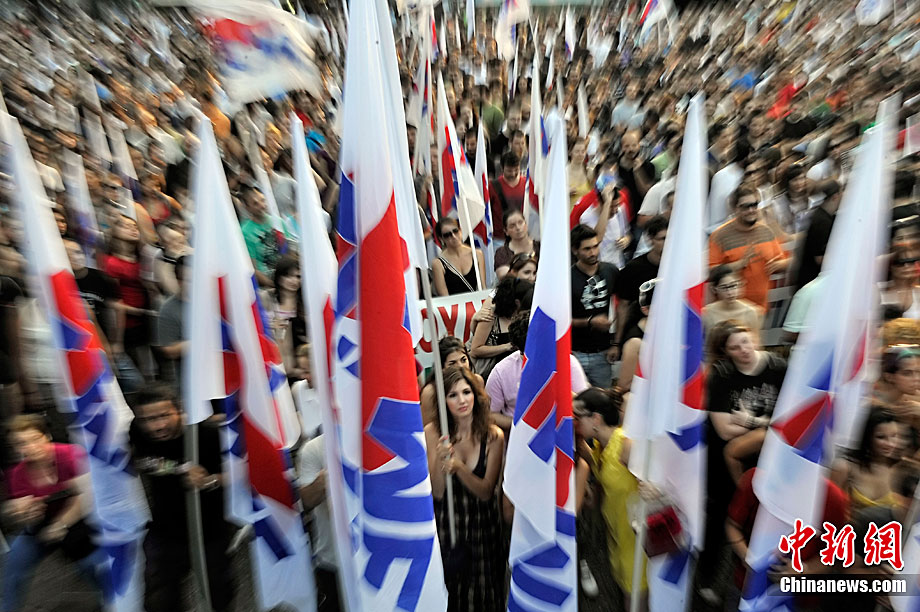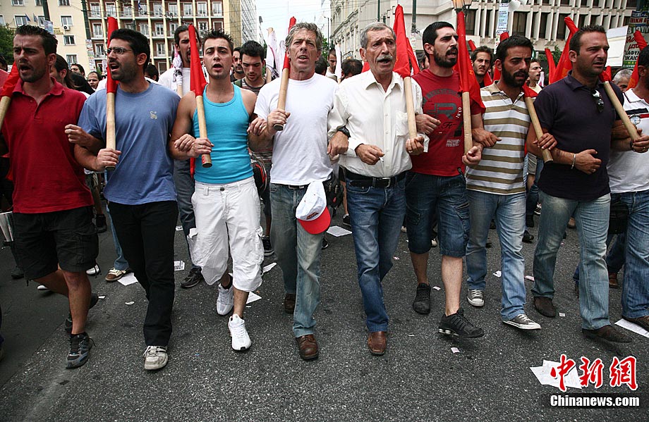 當(dāng)?shù)貢r(shí)間7月8日,希臘爆發(fā)了新一輪大罷工,抗議政府提前退休年齡,克扣養(yǎng)老金等嚴(yán)厲削減公共開支的措施。警方估計(jì),僅在首都雅典,就有1.2萬人走上街頭游行示威。據(jù)悉,這場(chǎng)為期24小時(shí)的罷工當(dāng)天導(dǎo)致希臘全國交通幾乎癱瘓,火車停運(yùn)、航班被迫延誤、旅游渡輪停止航行,前往希臘旅游的游客要到9日才能搭乘渡輪。政府公共機(jī)構(gòu)、學(xué)校、醫(yī)院、國營企業(yè)的正常運(yùn)營遭到沉重打擊。