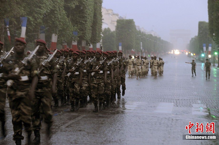 7月12日,法國巴黎的香榭舍大街上,來自13個非洲國家和法國軍隊的士兵冒雨進行了國慶日閱兵式彩排。7月14日是法國國慶日。1789年的這一天,巴黎人民攻占了象征封建統(tǒng)治的巴士底獄,推翻了君主政權(quán)。1880年,7月14日被正式確立為法國的國慶日,法國人每年都要隆重紀念這個象征自由和革命的日子。