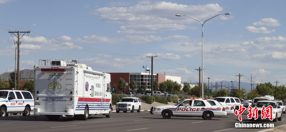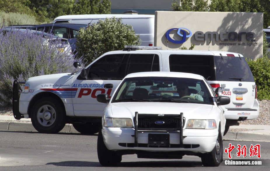 7月12日,美國(guó)新墨西哥州阿爾伯克基發(fā)生一起槍擊案,一名槍手在阿爾伯克基東南部的一家光導(dǎo)纖維廠辦公大樓會(huì)議室里開(kāi)槍,打死2人,打傷4人,槍手隨后自殺身亡。警方認(rèn)為,這可能是一起由家庭糾紛引起、發(fā)展到工作場(chǎng)所的槍擊事件。圖為警察在辦公大樓附近巡邏。