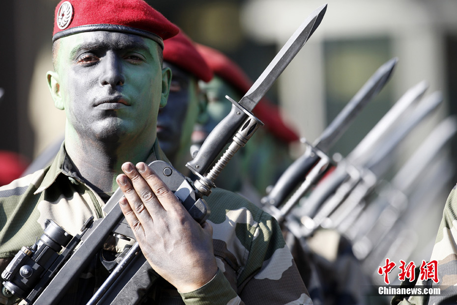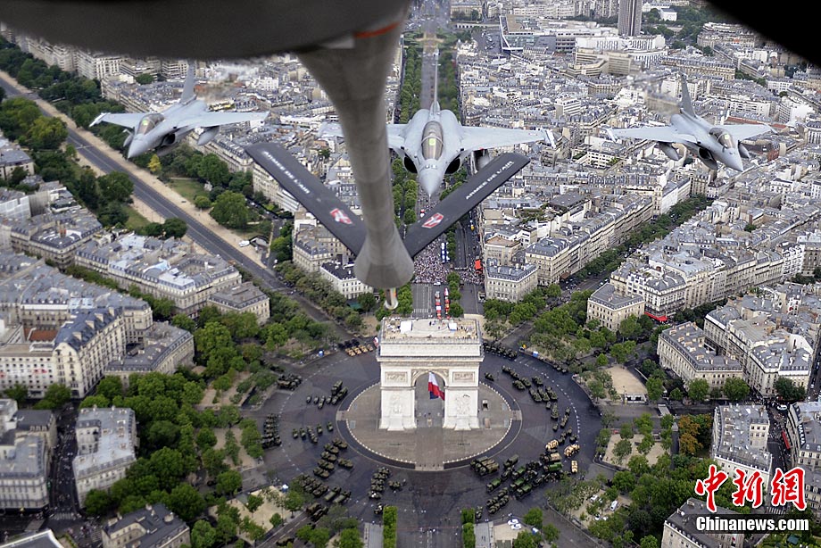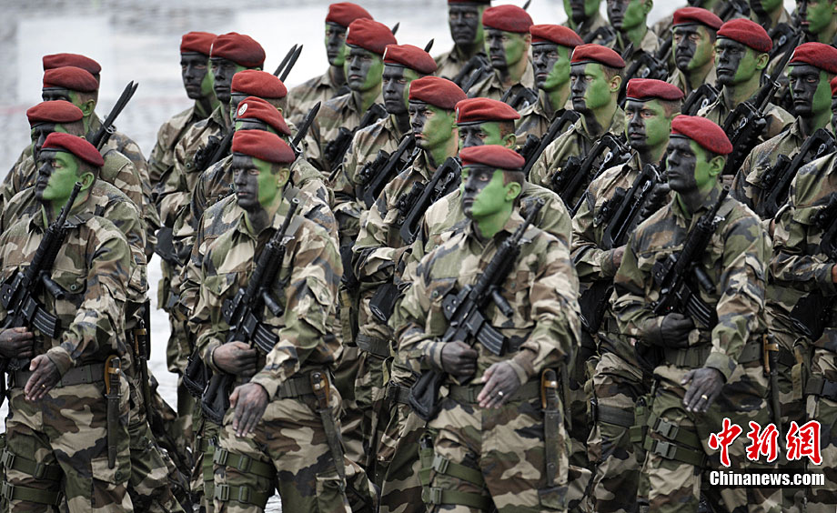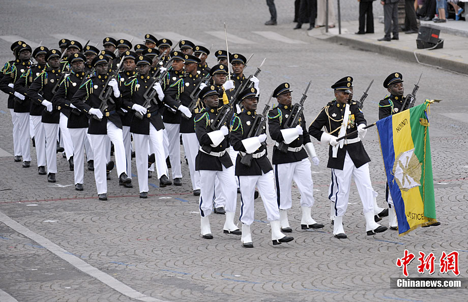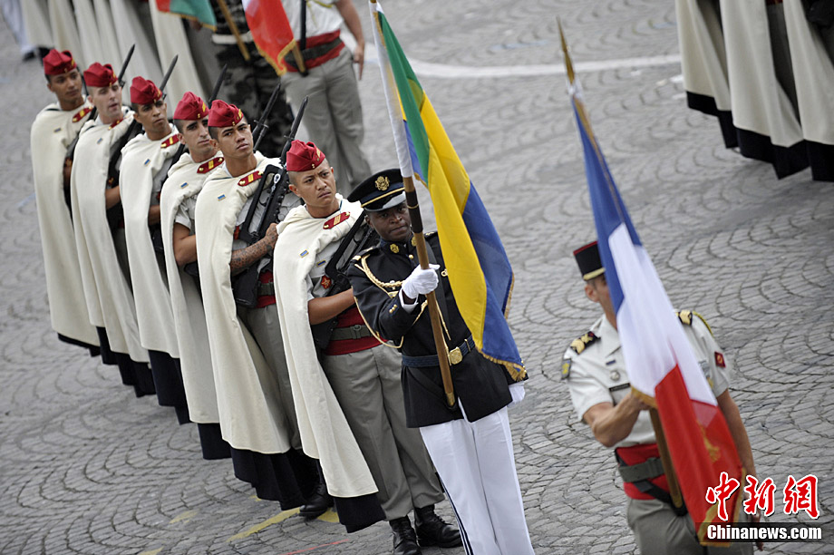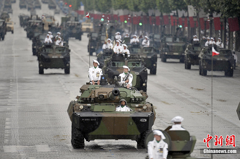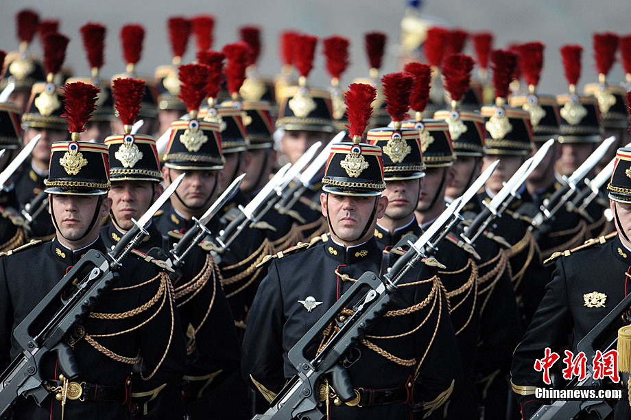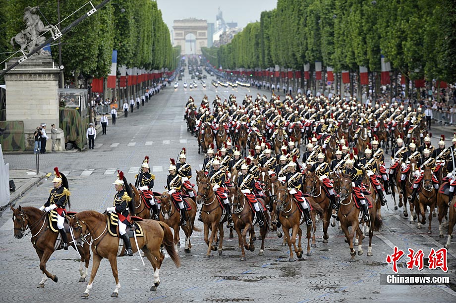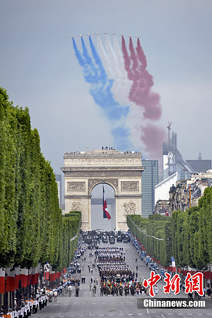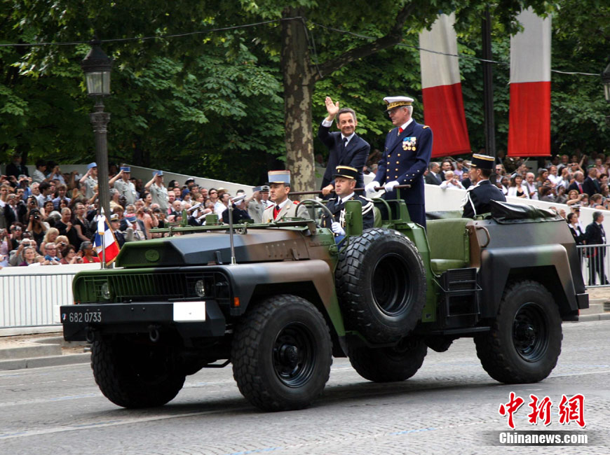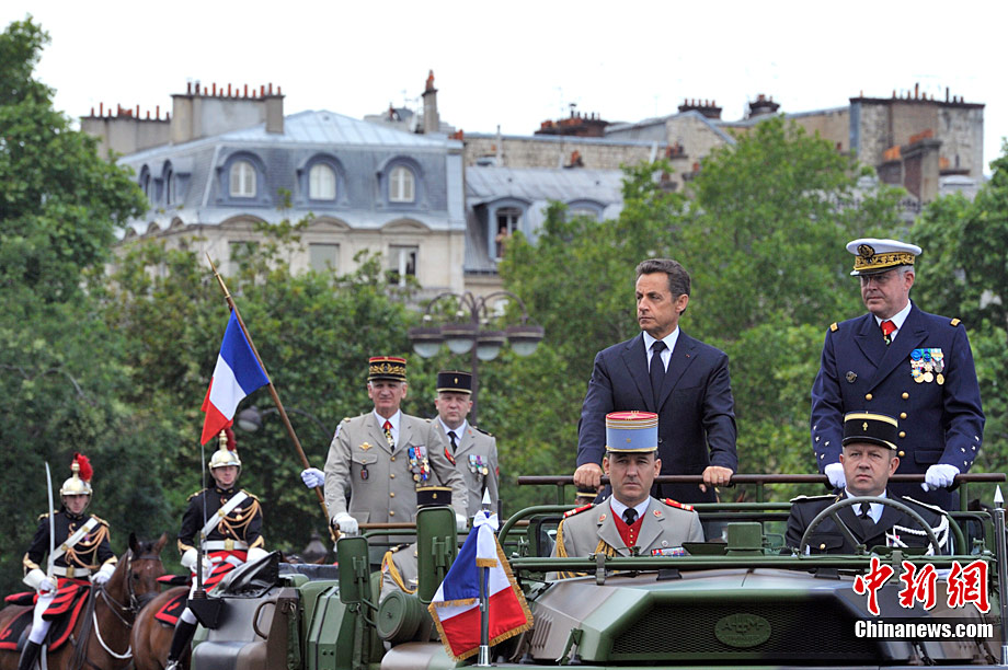 當地時間7月14日,法國巴黎舉行了盛大的國慶日閱兵式。圖為法國總統(tǒng)薩科齊在法國三軍總參謀長愛德華·紀堯的陪同下檢閱部隊。 中新社發(fā) 吳衛(wèi)中 攝