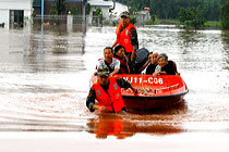 7月18日,重慶潼南柏梓鎮(zhèn)洪災(zāi)來襲,救援官兵將被困群眾轉(zhuǎn)移到安全地帶。曹多然 攝