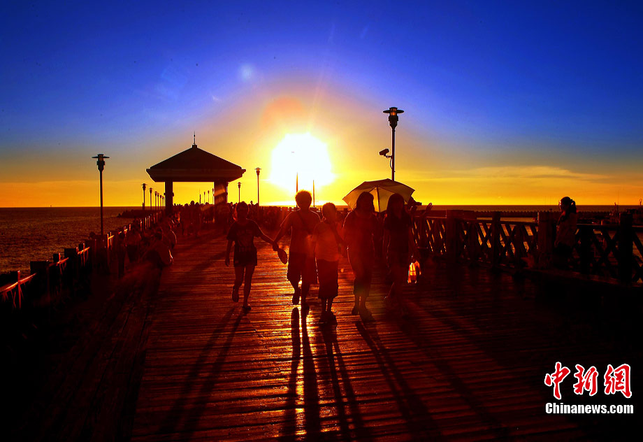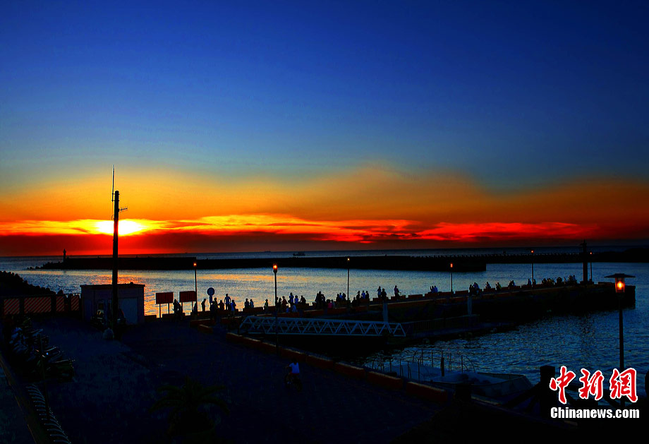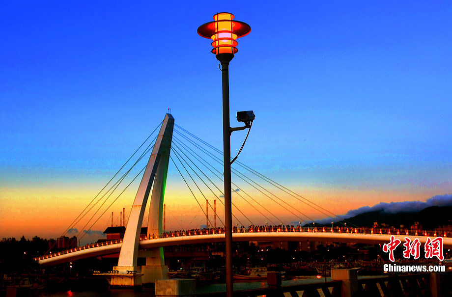 進(jìn)入7月中下旬的臺灣淡水漁人碼頭,游人如織,黃昏時下,晚霞照碼頭,漁船燈火明,景色迷人。據(jù)悉,淡水漁人碼頭,之前為淡水第二漁港,情人橋完工后,完善成為觀光休閑碼頭。中新社記者 宋吉河 攝