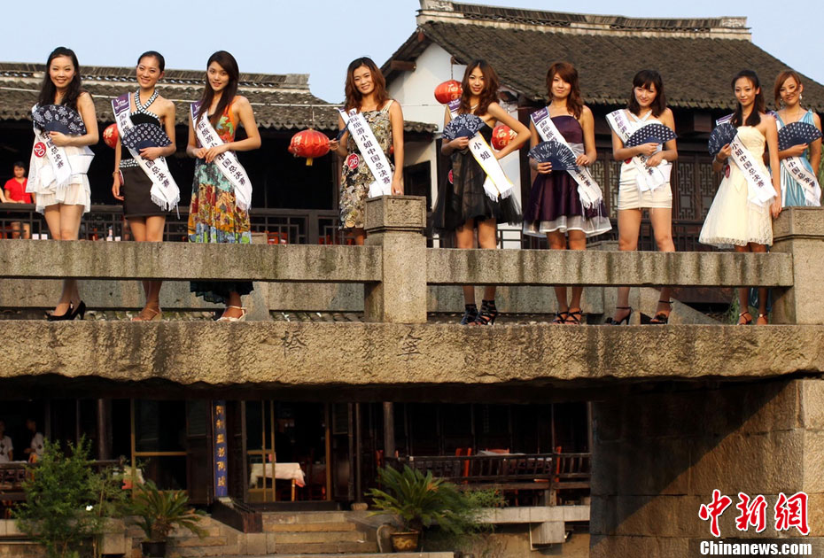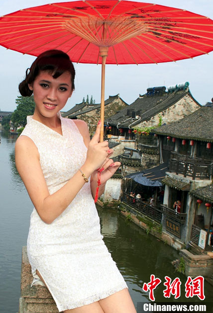 7月20日,正在浙江參加2010年國(guó)際旅游小姐中國(guó)區(qū)總決賽的34位佳麗來(lái)到西塘古鎮(zhèn)拍攝外景。此次賽事采取六輪淘汰賽形式進(jìn)行冠亞季選拔,并以欄目采取真人秀形式立體展示國(guó)旅及合作景區(qū)風(fēng)采。圖為參賽佳麗身著旗袍展示風(fēng)采。中新社發(fā) 錢興強(qiáng) 攝