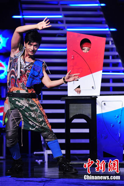 7月21日,國際某飲料巨頭在北京召開新聞發(fā)布會,最新主題廣告震撼首播。古天樂、羅志祥、黃曉明、蔡依林身著華麗戰(zhàn)袍駕駛戰(zhàn)車亮相,他們以師兄弟的身份打造全新“西游記”,“世界小姐選美大賽冠軍”張梓琳更是以蜘蛛精身份出演。中新社記者 富田 李學(xué)仕 攝