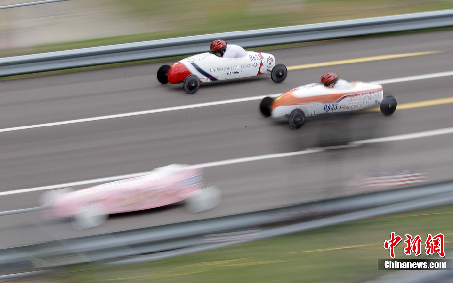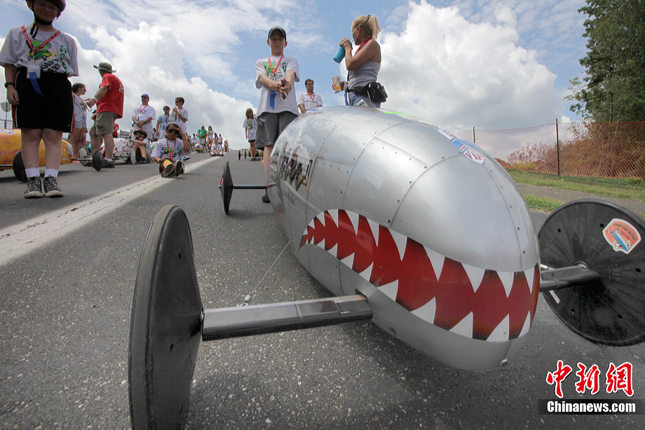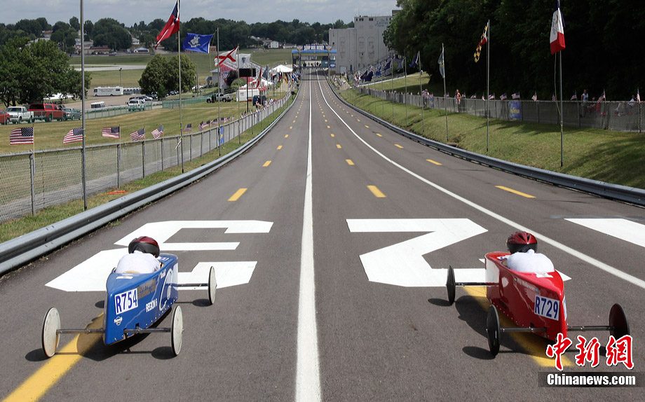 當(dāng)?shù)貢r(shí)間7月21日,美國俄亥俄州舉行了第73屆全美“肥皂盒”小車大賽。來自美國各地以及加拿大、日本、德國和新西蘭的約500名車手?jǐn)y帶自己的愛車參賽!胺试砗小毙≤嚊]有任何動(dòng)力裝置,其主要設(shè)計(jì)目標(biāo)是減少空氣阻力和摩擦力,以便讓小車的速度達(dá)到最高。