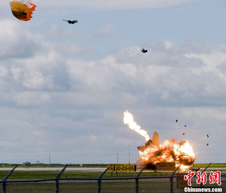 7月23日,在加拿大阿爾伯塔萊斯布里奇機(jī)場,F(xiàn)/A-18C戰(zhàn)斗機(jī)飛行員彈射逃生。飛行員已被送到當(dāng)?shù)匾患裔t(yī)院,是否受傷尚不清楚。事故原因正在調(diào)查中。圖為戰(zhàn)機(jī)墜地爆炸瞬間。